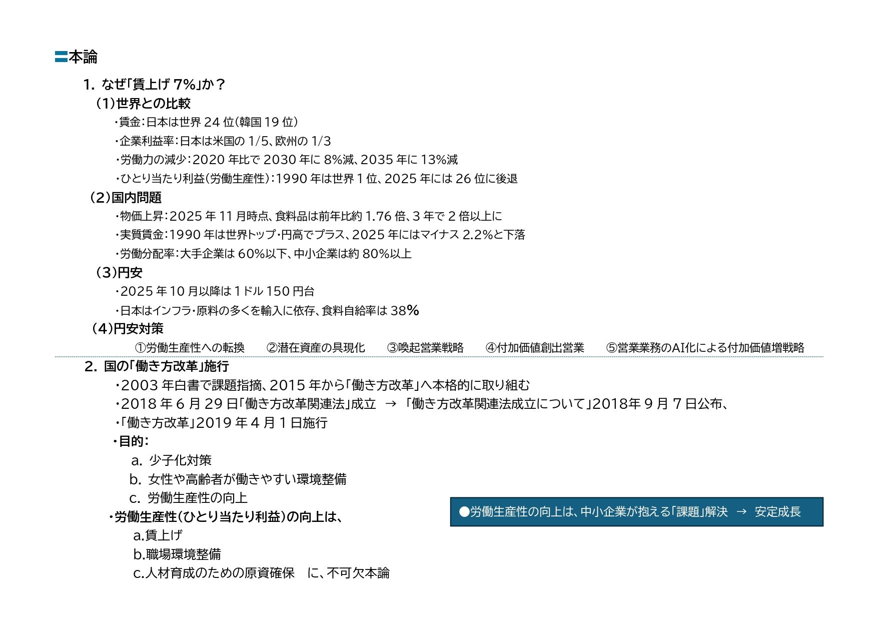 1. 賃上げ7%の経営課題と対策