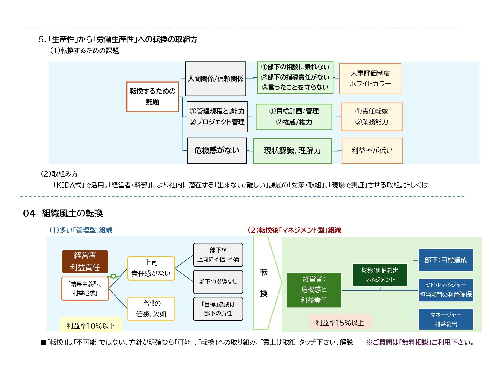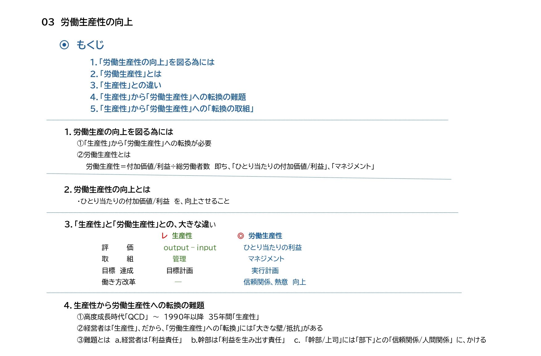 ______3. 生産性と労働生産性の違い 4. 転換の難題 5. 転換への取組み方 を述べた。