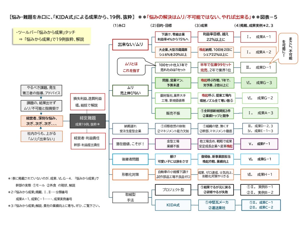 ~ 経営者がぶつかる“「悩み/経営問題」”、どう解決したか、その“「成果」”から19例、抜粋、解説 ~