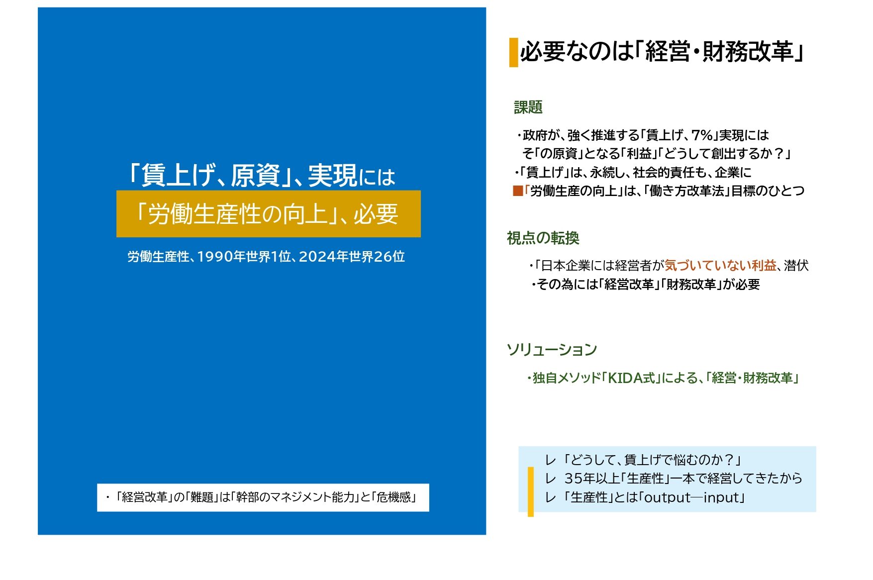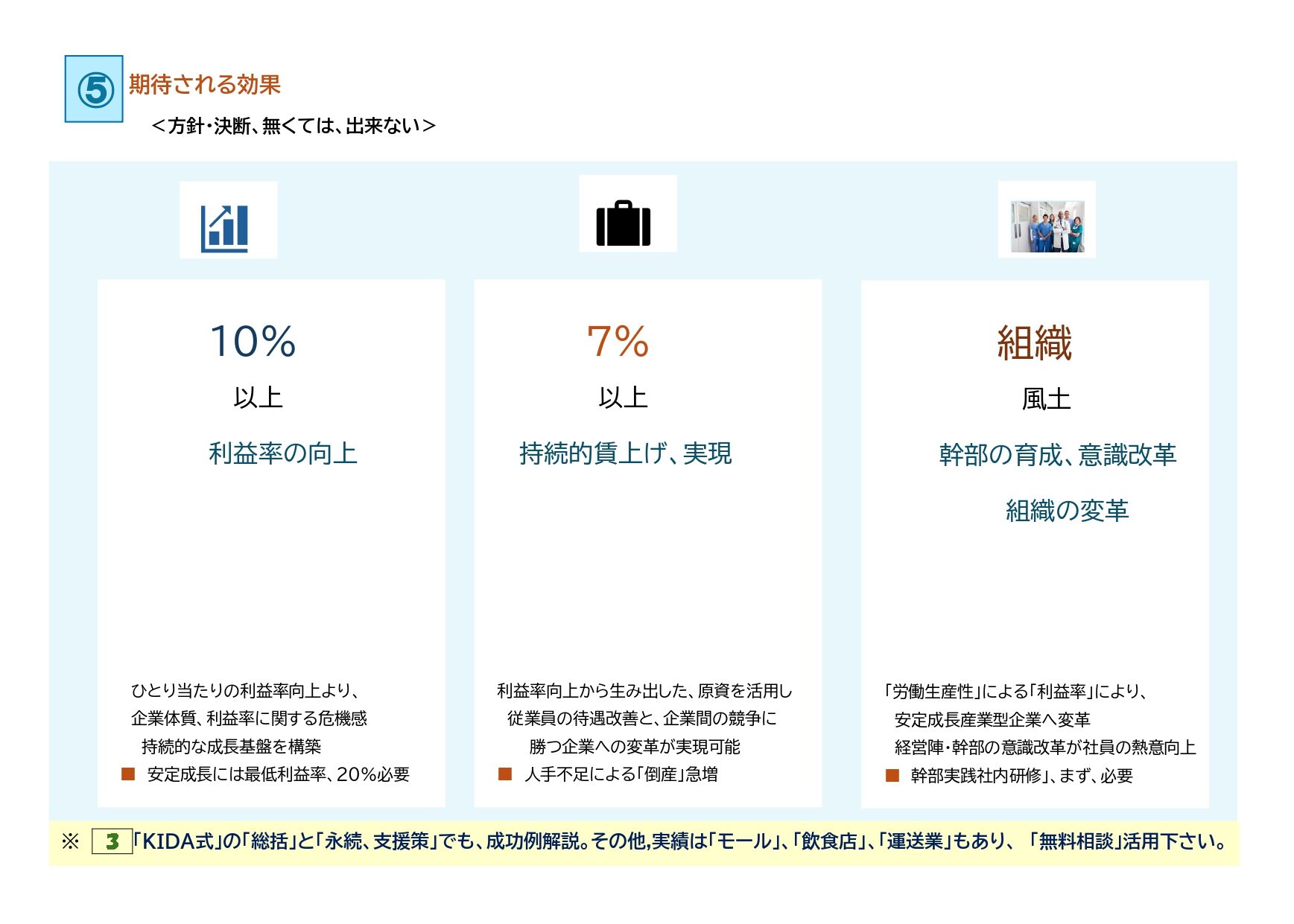 __・組織改革・幹部及び中間層のスキルアップ → 管理・丸投げ型から「マネジメント」への転換
